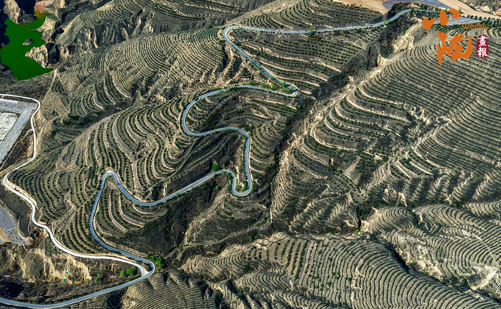 萬畝梯田錯落有致,層層彎曲盤繞,從高空俯瞰猶如大地“指紋”。當?shù)亟?jīng)過多年的小流域治理,昔日的荒山禿嶺,今日滿目綠意盎然。那些蜿蜒曲折的梯田線條猶如畫家筆下的抽象作品,充滿了韻律感和節(jié)奏感。尤其是在清晨或傍晚時分,柔和的光線將梯田勾勒得更加立體,光影交錯之間,每一幀畫面都像是一張精美的攝影作品。
