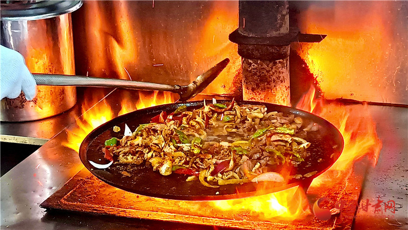 后來這種烹飪方式漸漸被當(dāng)?shù)匕傩諏W(xué)會(huì)并加以改良,以牛、羊雜為主要食材,放在鐵鏊子上炒制,山丹炒撥拉由此而來。