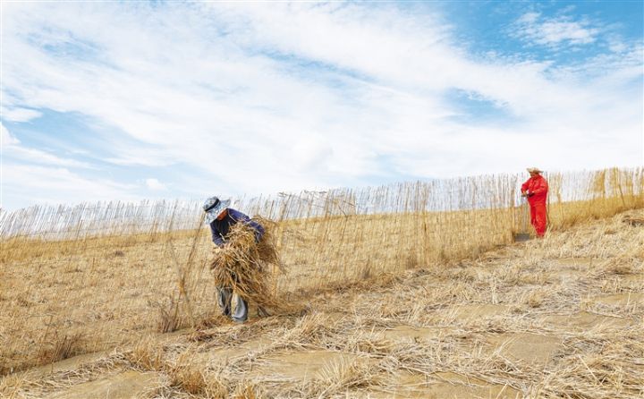 金塔:給風(fēng)沙“設(shè)障” 為沙漠“穿衣”