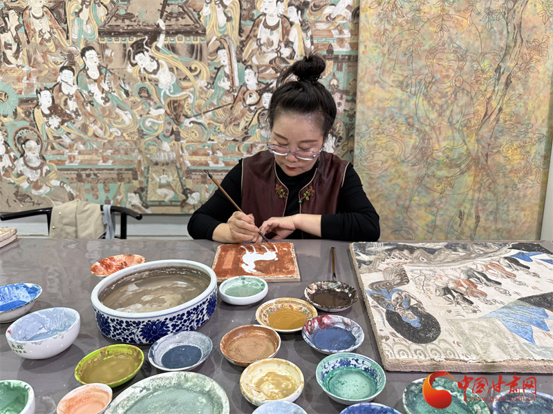 10月31日,由中央網(wǎng)信辦網(wǎng)絡(luò)傳播局、國家文物局政策法規(guī)司指導(dǎo),中國互聯(lián)網(wǎng)發(fā)展基金會(huì)特別支持,甘肅省委網(wǎng)信辦、省文物局主辦,張掖、嘉峪關(guān)、酒泉市委網(wǎng)信辦與敦煌研究院、中國甘肅網(wǎng)、鳳凰網(wǎng)甘肅頻道共同承辦的“何以中國|壁畫里的中國·當(dāng)AI遇見小飛天”網(wǎng)絡(luò)主題宣傳活動(dòng)采訪了敦煌石粉彩繪技藝的非遺傳承人王亞林。