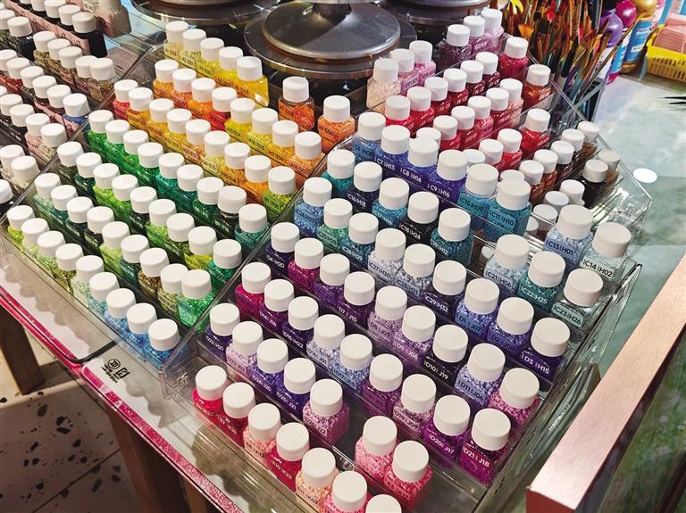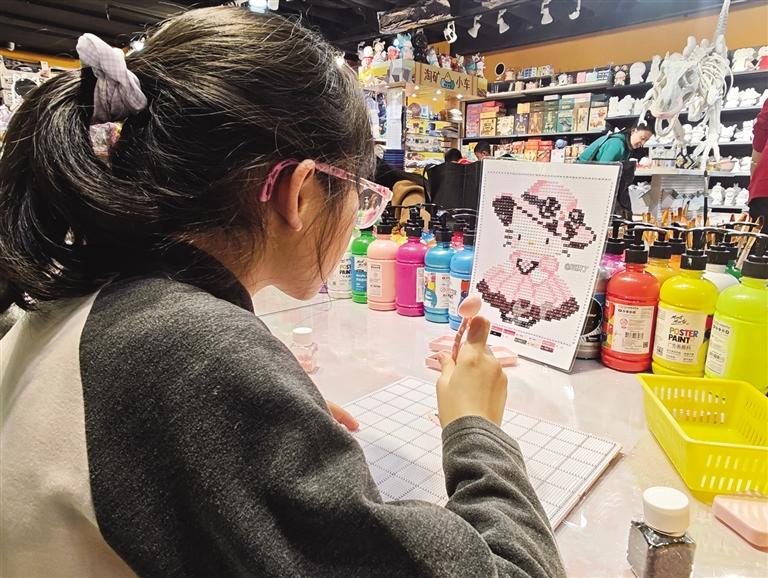 “我們主要做拼豆、銀飾DIY和陶藝,也有石膏彩繪、串珠、奶油膠這些項目,基本上當(dāng)下流行的手工都能體驗到。”店內(nèi)工作人員告訴記者,一站式、多樣化的體驗,更符合現(xiàn)在消費者的需求,不用跑多家店,就能玩遍多種玩法。
