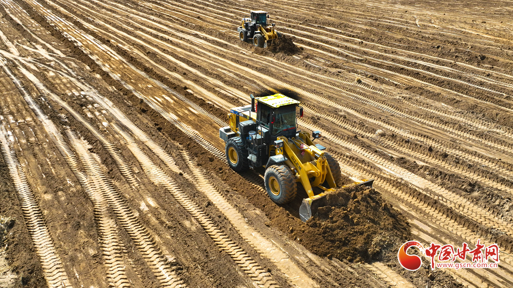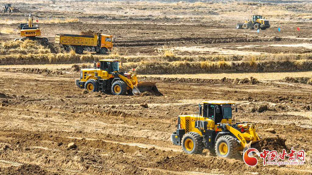3月20日,在張掖市民樂縣新天鎮(zhèn)李寨村高標準農田建設現場,推土機、平地機在田野間往來穿梭,將高低不平、細碎零散的“小塊田”逐步整合為連片“大田”。